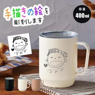 手描き 似顔絵入り 400ml蓋付き真空ステンレスマグカップ (ステンレスマグ マグ 真空断熱マグカップ 敬老の日 プレゼント 手描き 似顔絵 お絵かき 子どもの絵 イラスト)